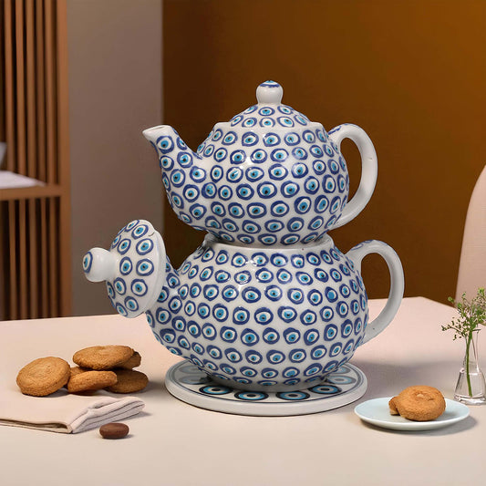 Handmade Turkish Ceramic Teapot Set – Evil Eye Design