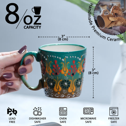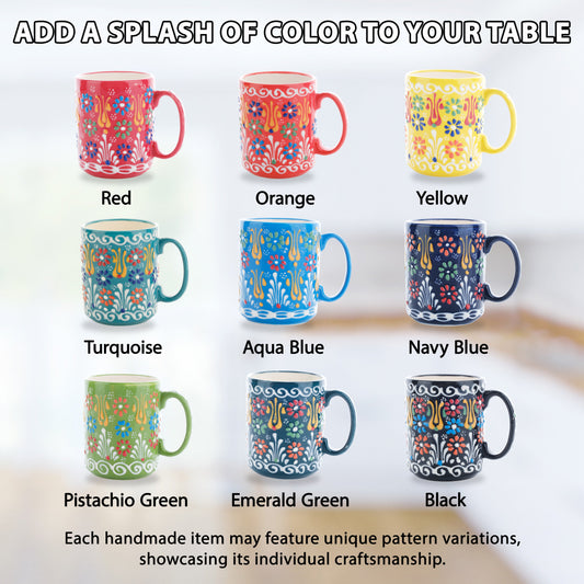 Handmade Turkish Ceramic Coffee Mug – 12 oz Traditional Hand-Painted Mug