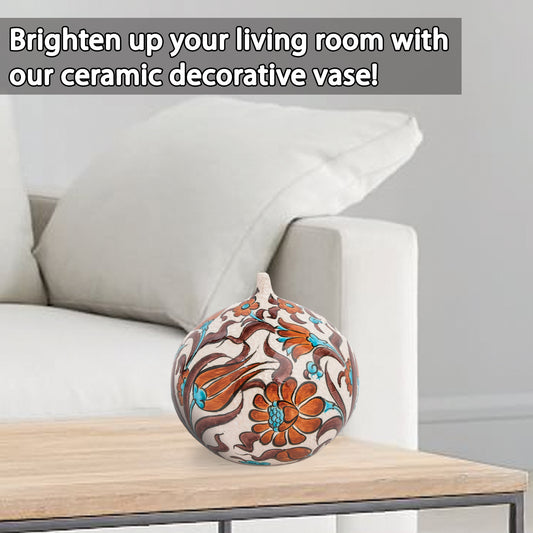 Handmade Ceramic Decorative Vase, Floral Sphere Ceramic Vase