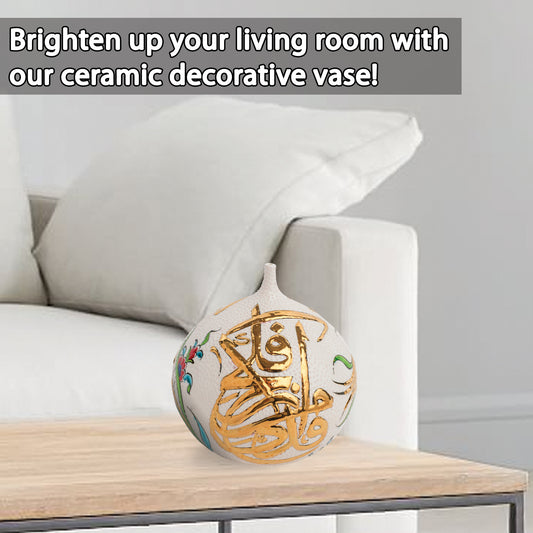 Handmade Ceramic Decorative Vase, Royal Calligraphy Ceramic Vase, Golden Vase