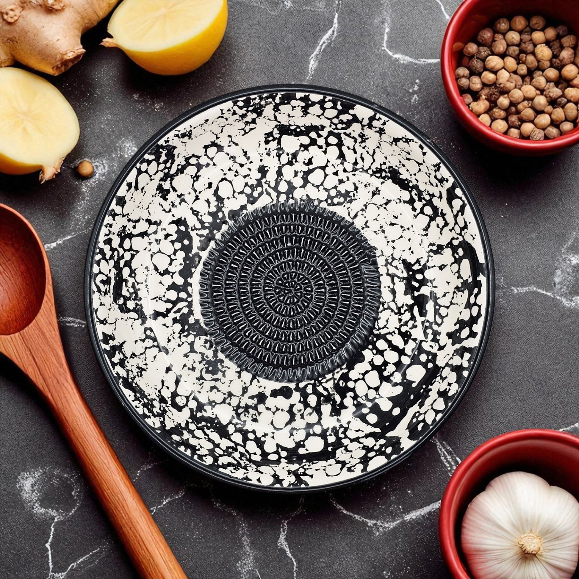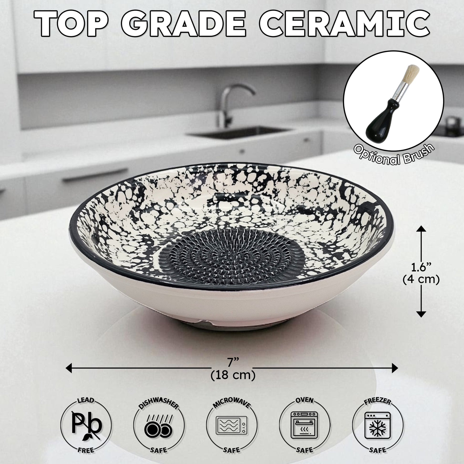Garlic Grater Bowl, Black Sponge Grater Plate, 7" Ceramic Garlic Grinder, Decorative Grater Bowl