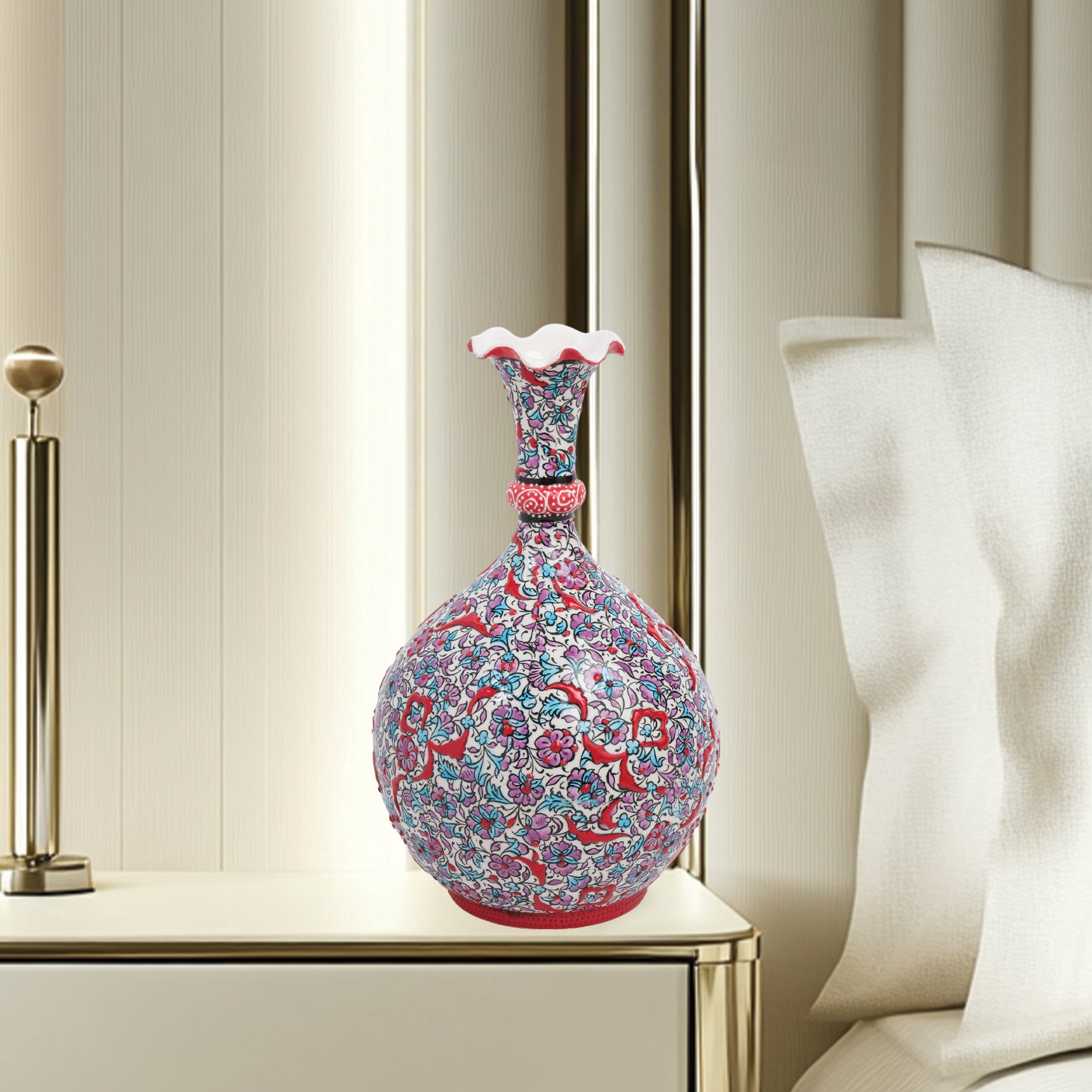 Handmade Ceramic Decorative Vase, Ruby Blossom Ceramic Vase